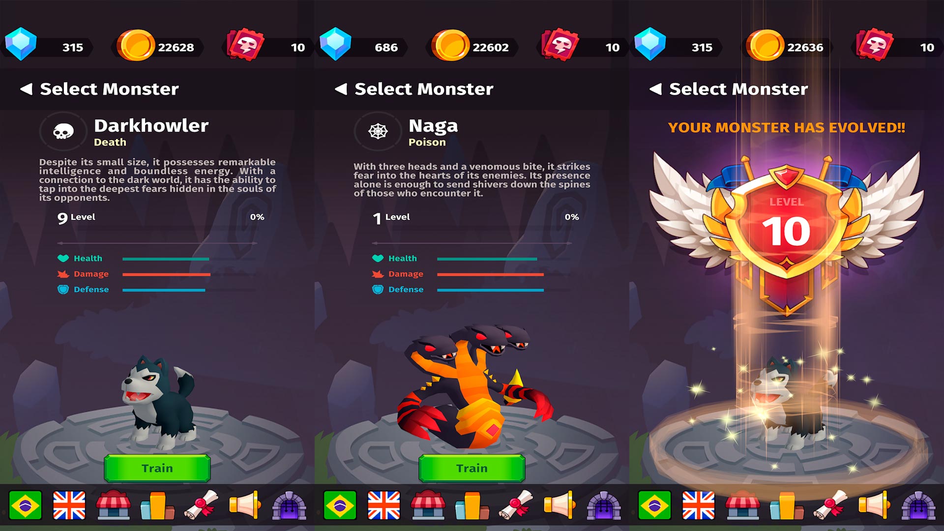 Three-Tier Evolution System - Comprehensive monster progression featuring distinct evolutionary stages (Base → Intermediate → Final), each with unique visual designs, enhanced abilities, and strategic gameplay implications.